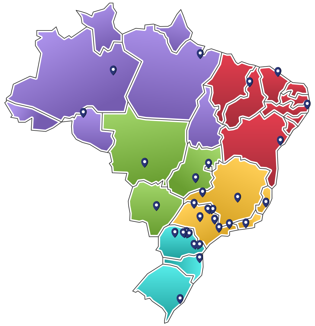 25 pontos de distribuição espalhados pelo Brasil, garantindo uma ampla cobertura de distribuição
